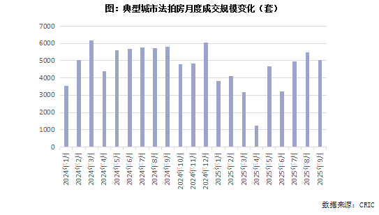 9月,全国法拍房市场出现了“供给增加而需求放缓”的趋势。根据最新统计数据,当月新增挂牌房源达4.2万套,环比大幅上升31%,同比增长10%;起拍总价为406亿元,环比增加25%。本月的新增挂牌数量较上月有所回升,接近7月份的年度高点。成交套数为5033套,虽然环比下降了8%,但依然处于年内的高位。同时,市场的竞拍热度明显减弱,成交房源中只有5.5%的房源出价超过100次,而中位出价次数降至14次,这都是年度的新低。9月法拍房的成交率为19.3%,较上月环比下降1.9个百分点,跌至年内的平均水平以下。