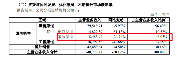 卫浴企业也在加大力度布局家装渠道。箭牌家居财报显示,2024年箭牌家居家装渠道收入为11.82亿元,同比增加3.25%;2025年上半年,箭牌家居家装渠道收入为4.62亿元,占营业收入比例为16.51%。